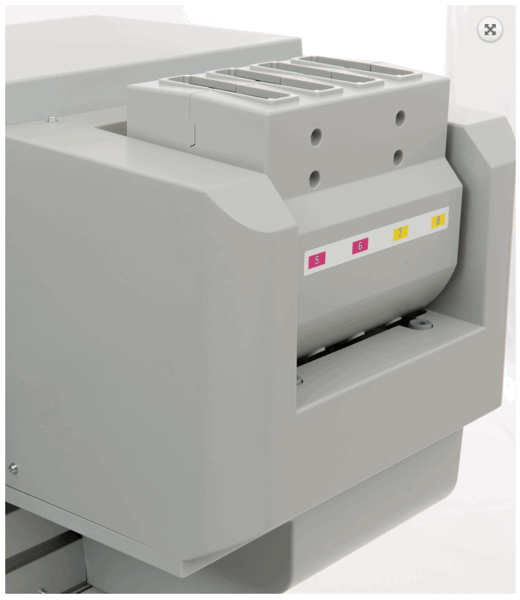The integrated print heads are capable of producing ink drops ranging from 3.3 pl to 45.3 pl. Bottom line, they can produce a wider range of ink dots, which are moreover jetted at a much faster speed compared to other print heads on the market. The result is faster output speeds and moreover a much better print quality at higher output speeds.